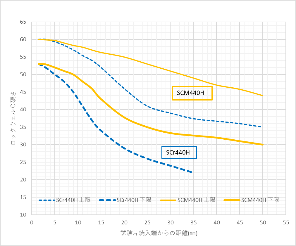 図2はJISから抜粋した表20(SCr440H)の図と表26(SCM440H)の図を同じ図で表示したものです。