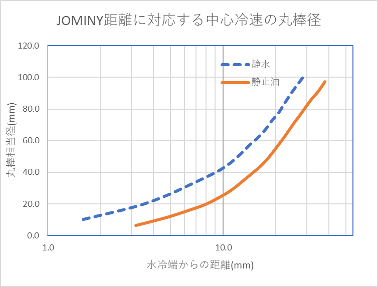 JIS G4052にある、焼入性を保証した構造用鋼材(H鋼)というのは、この距離と硬さの関係がある範囲に入ることを保証した鋼材です。