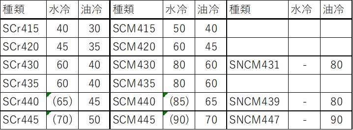 - 焼入性だけで「焼きが入る」と判断