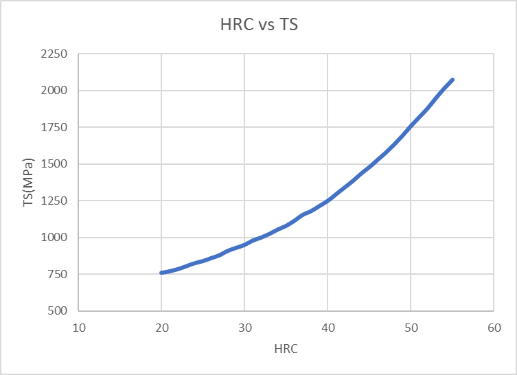 以上、焼入性はほぼ成分によって決まりますが、実際の焼入れ硬さは、合金元素以外に断面形状、断面寸法、断面位置、焼入媒体(水、油など)、結晶粒度などによって変わってきます。